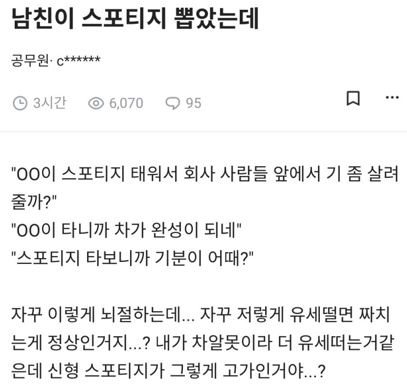 남친차가 맘에 안드는 여자